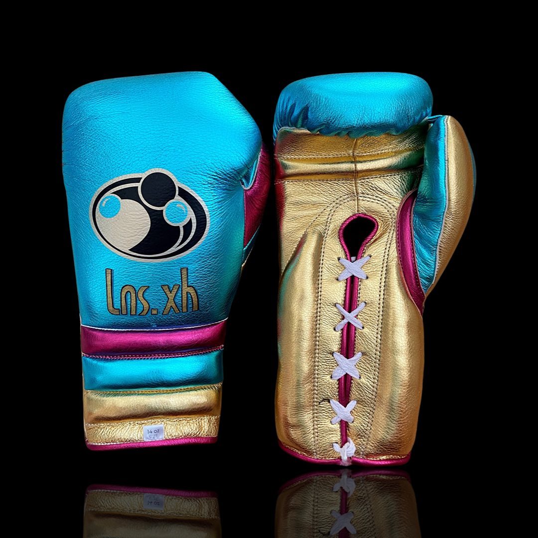 Grant Boxing Gloves – Blue/Pink/Gold | Professional Lace-Up Training Gloves