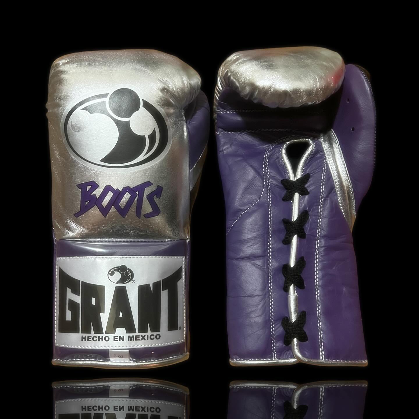 Grant Boots Silver Purple Lace-Up Boxing Gloves Training and Sparring Edition