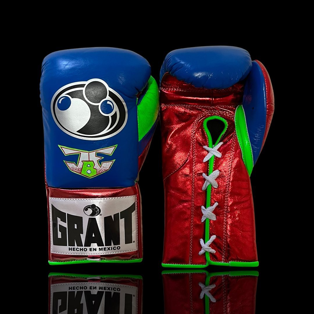 Grant Boxing Gloves Blue Red and Neon Green – Professional Lace-Up Training Gloves