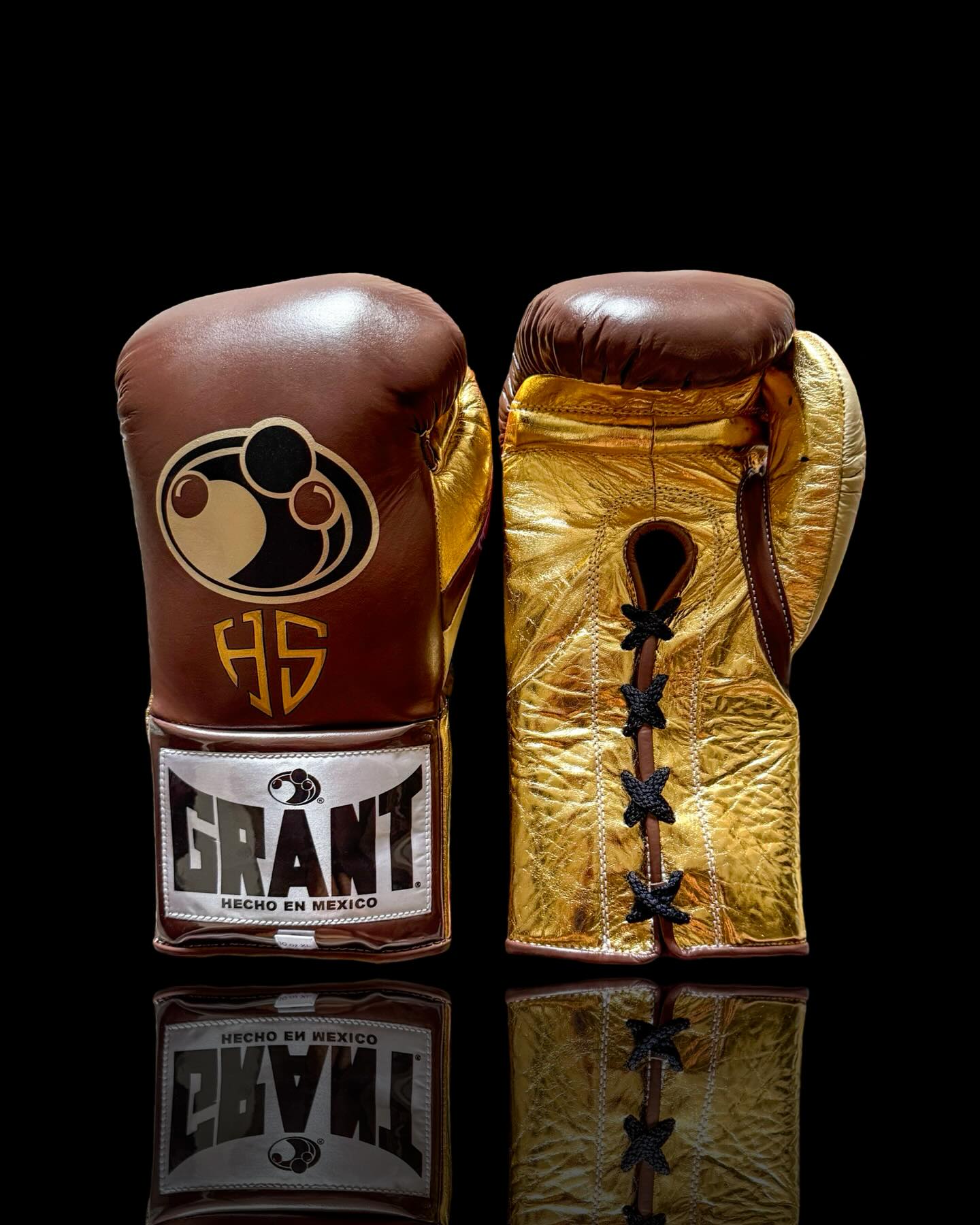Grant Boxing Gloves Brown & Gold Metallic – Professional Lace-Up Fight Gloves