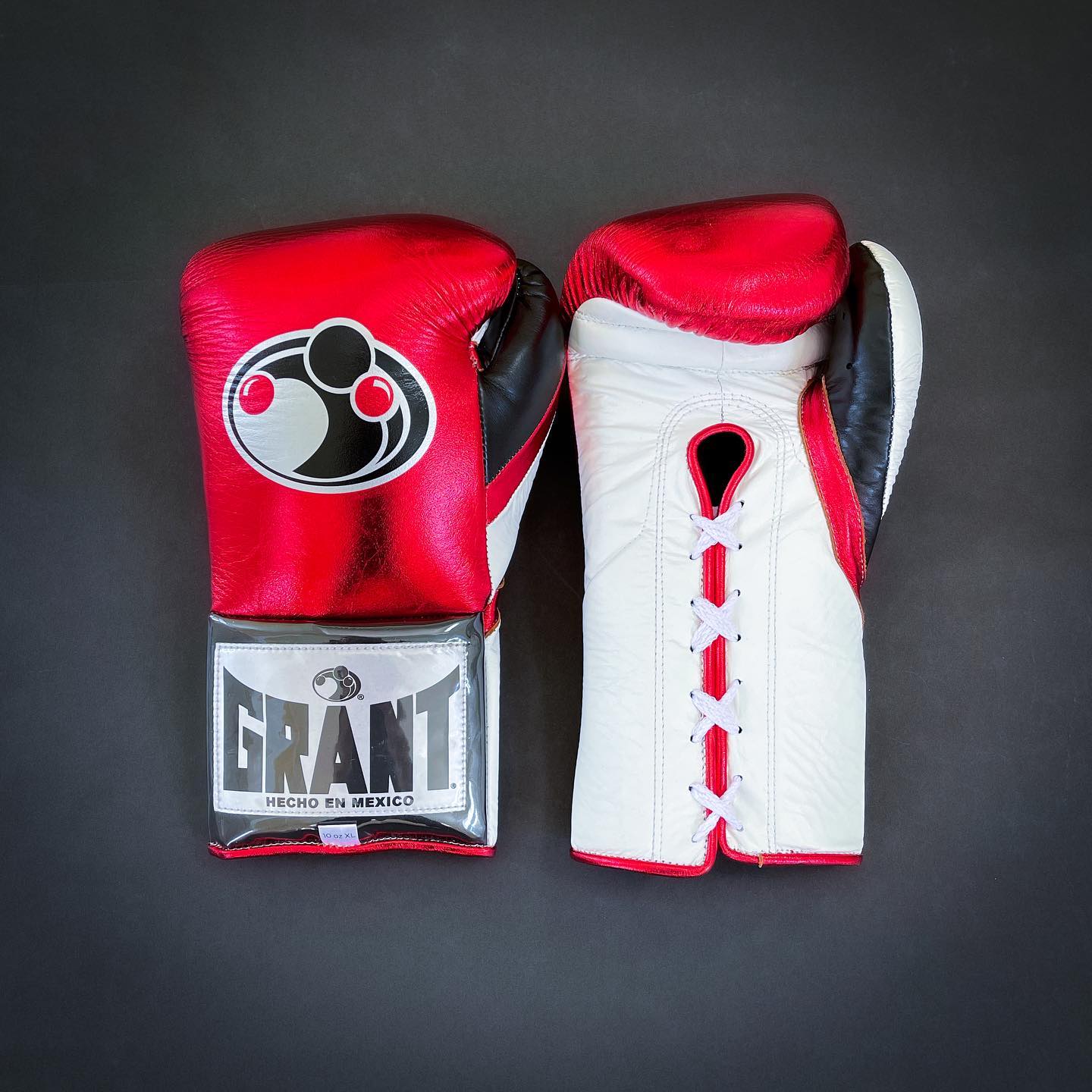 Grant Boxing Gloves Metallic Red White Black – Professional Lace-Up Fight Gloves