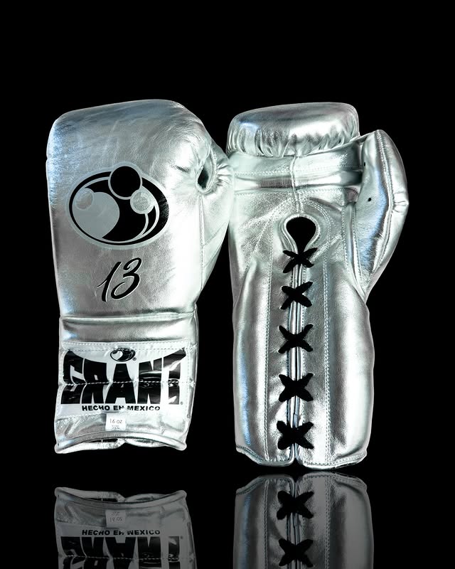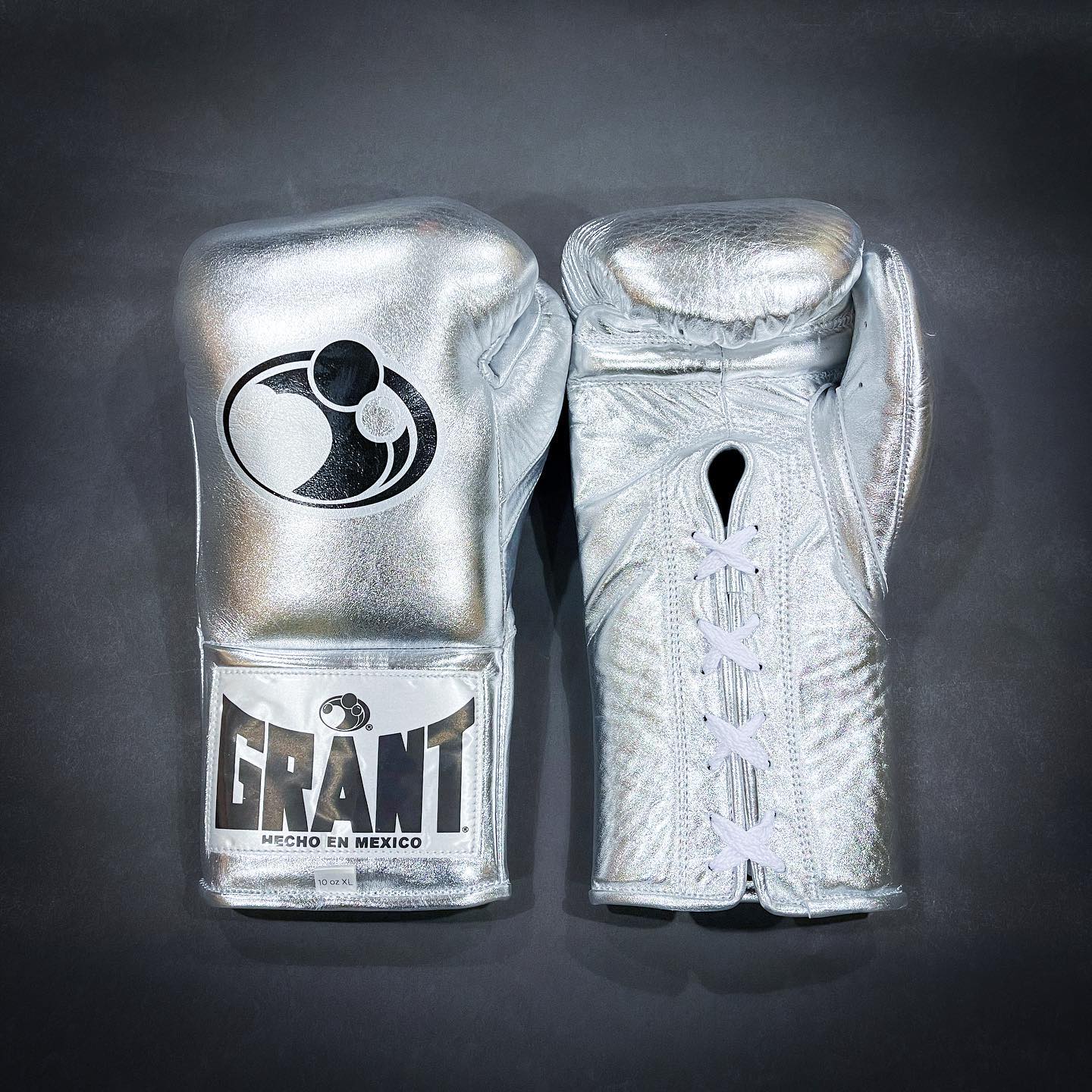 Grant Boxing Gloves Metallic Silver – Professional Lace-Up Fight Gloves