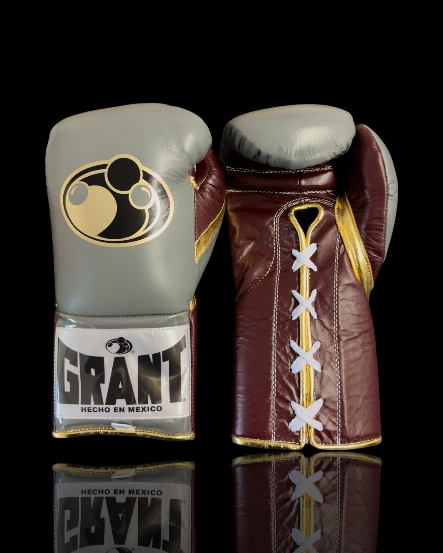 Grant Boxing Gloves Grey Maroon Gold – Premium Lace-Up Professional Fight Gloves