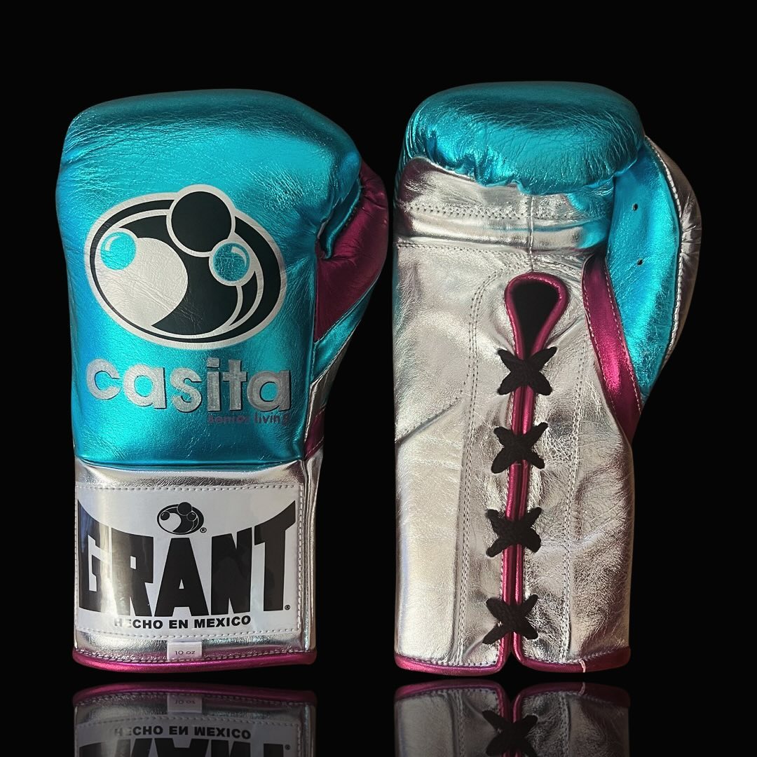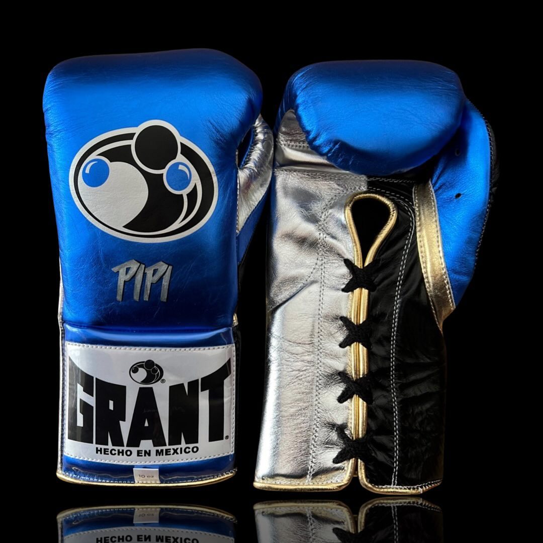 Grant Metallic Blue Silver Boxing Gloves Lace-Up Training Edition