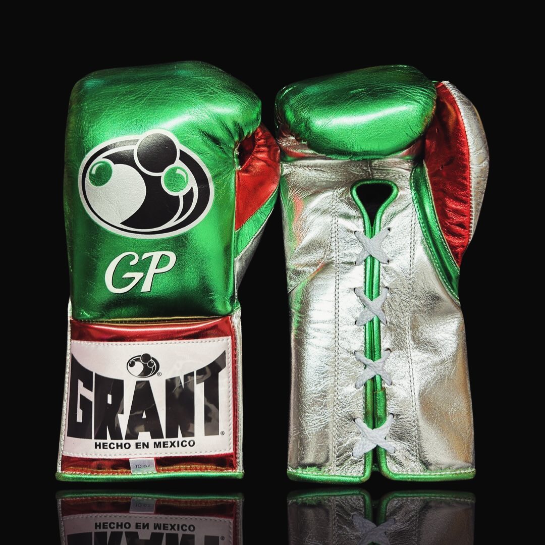 Grant Metallic Green & Silver Lace-Up Boxing Gloves Premium Edition