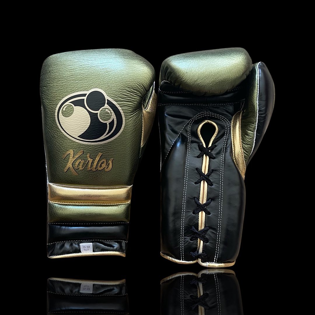 Grant Metallic Olive Green and Black Lace-Up Boxing Gloves