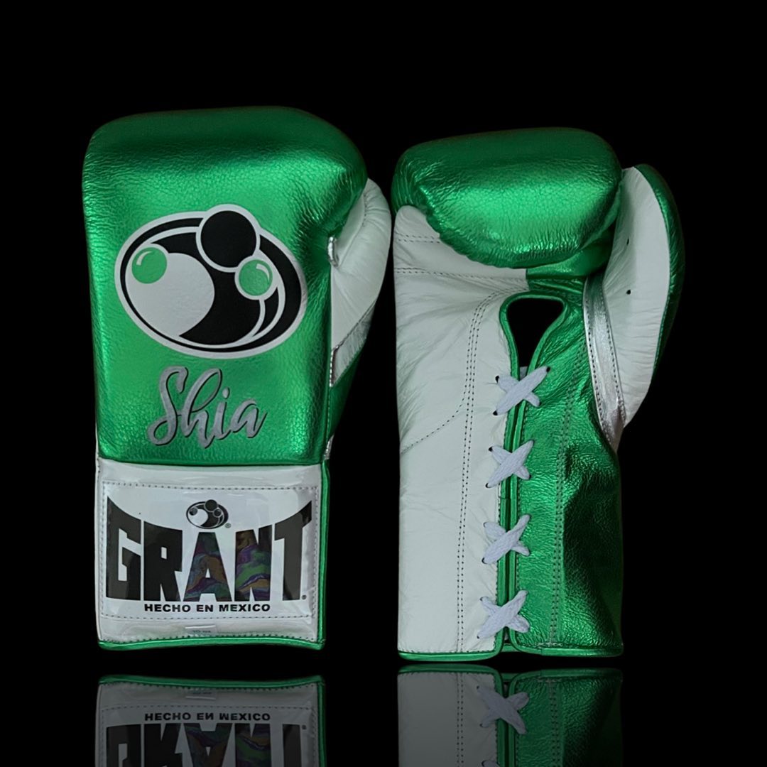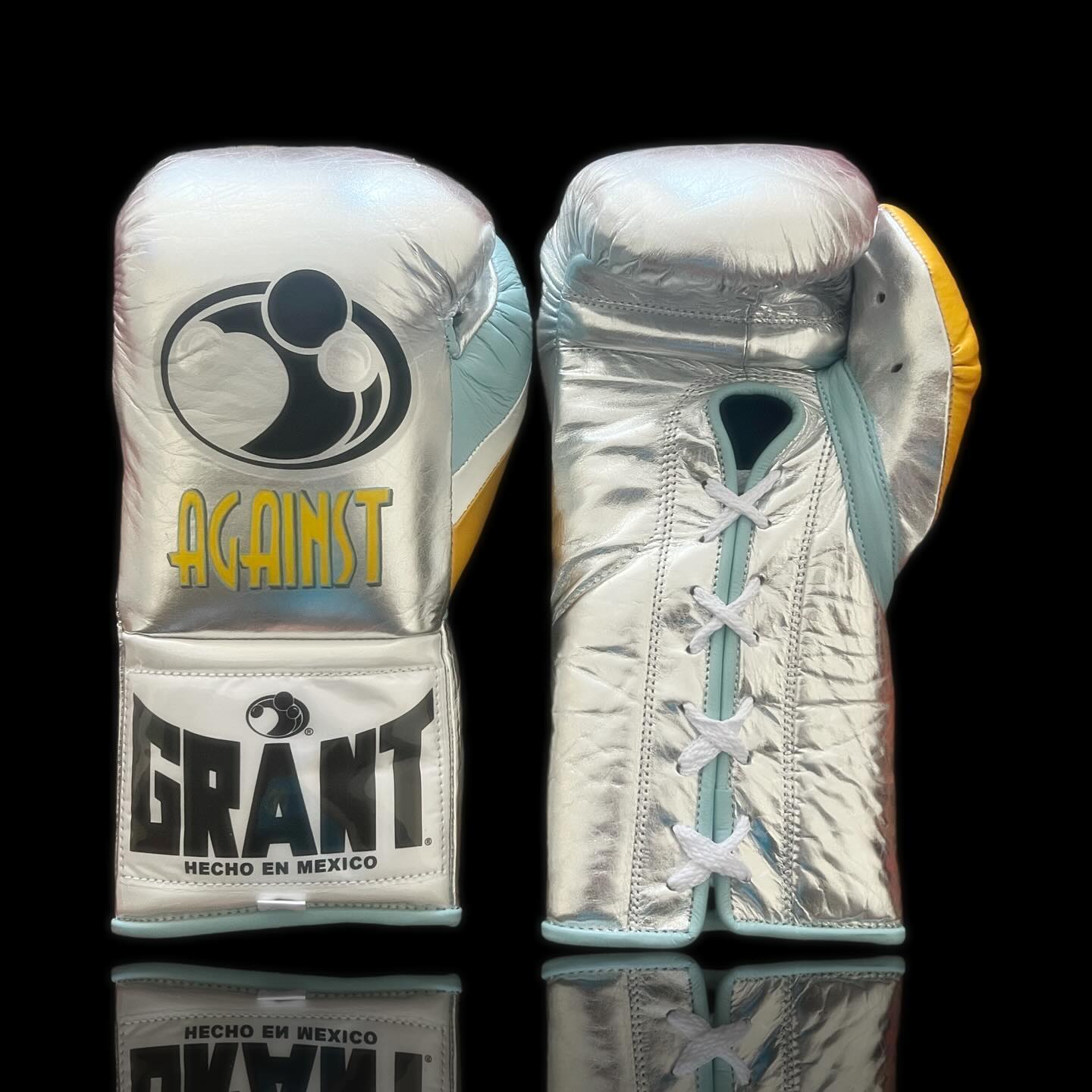 Grant PSG Silver Lace-Up Boxing Gloves – Metallic Professional Fight Series