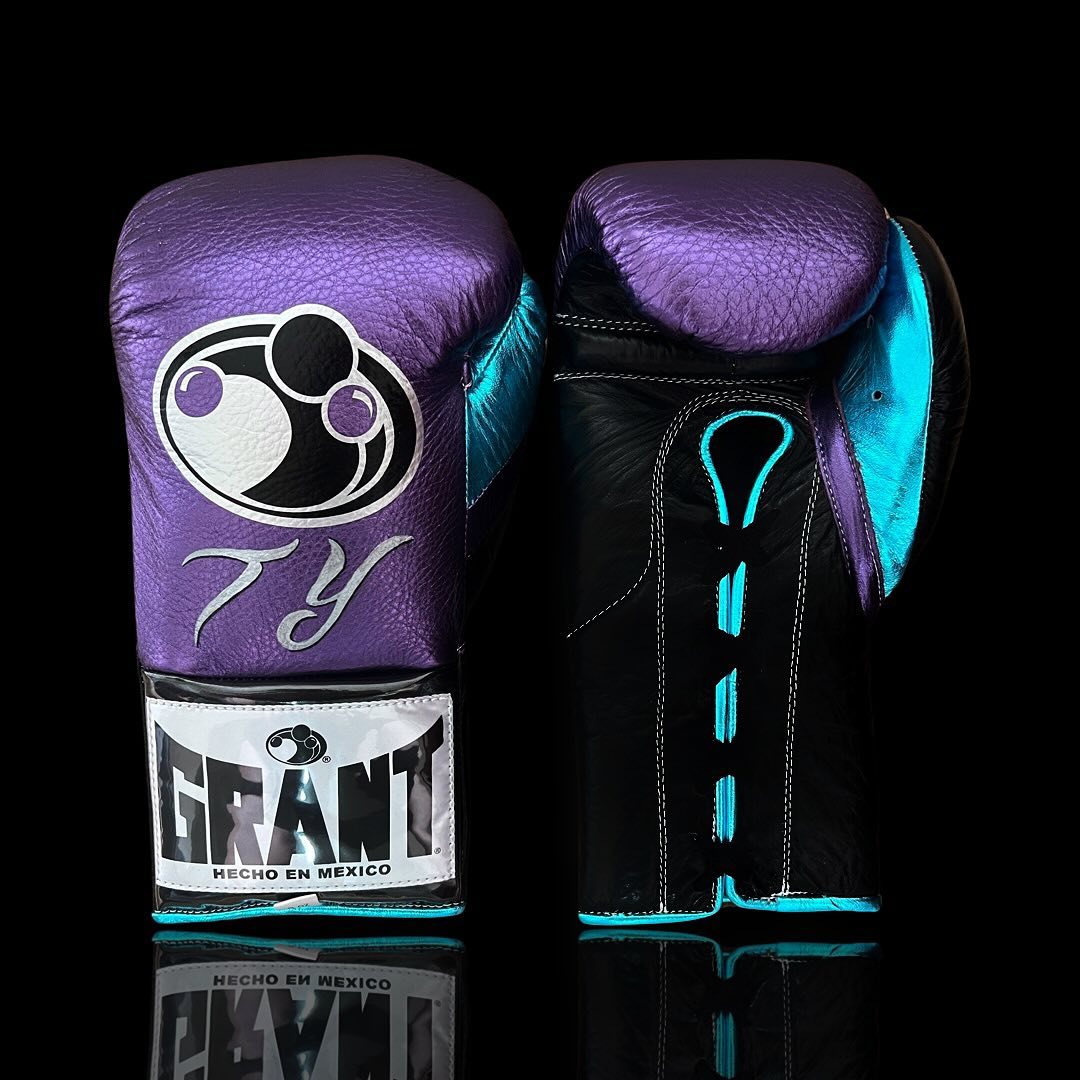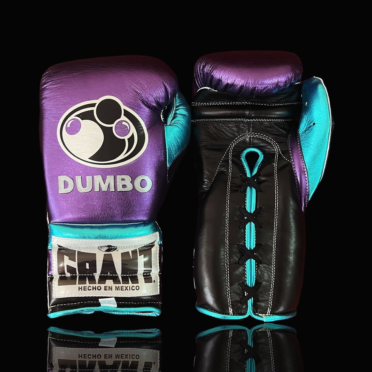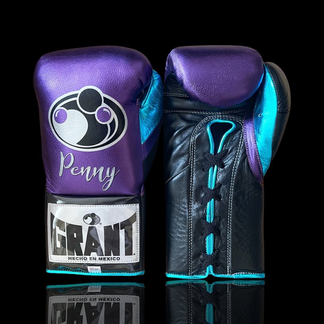 Grant Purple & Teal Lace-Up Boxing Gloves – Metallic Professional Fight Edition
