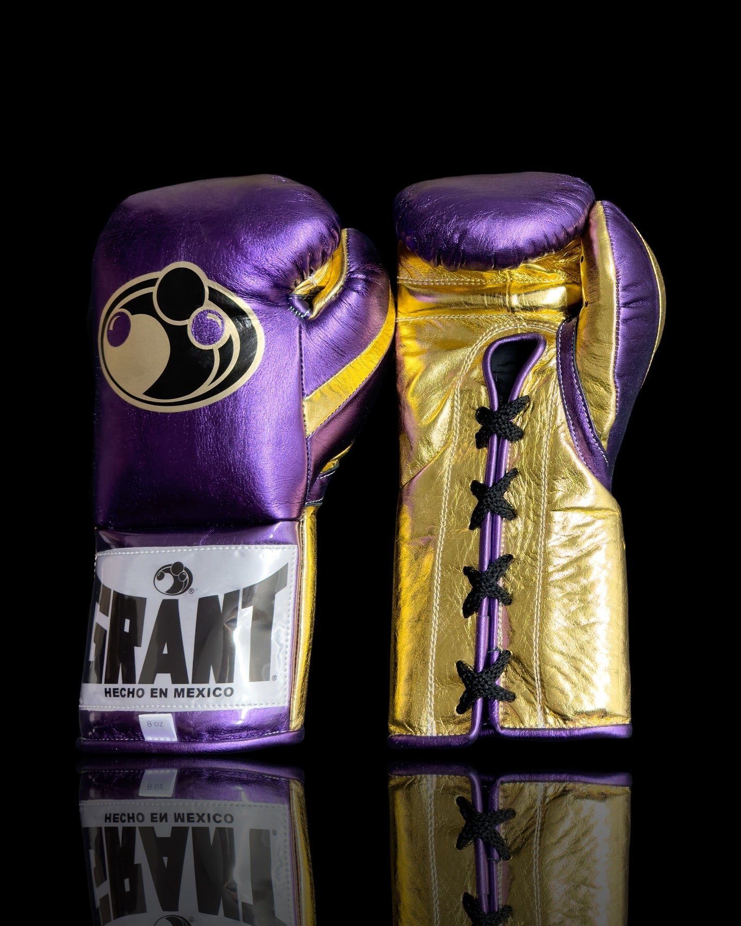 Grant Purple Gold Metallic Lace-Up Boxing Gloves Premium Edition