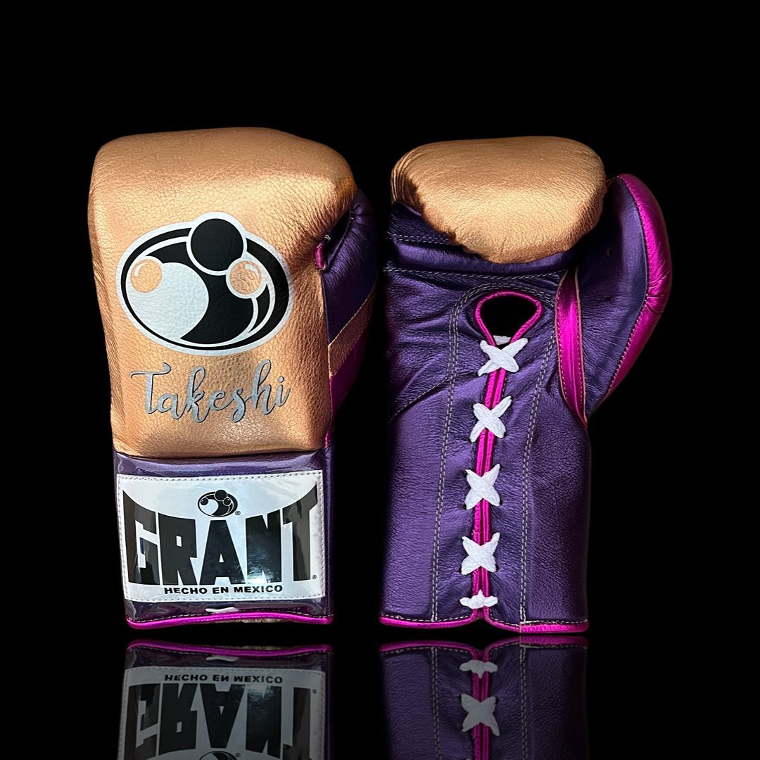 Grant Rose Gold and Purple Lace-Up Boxing Gloves – Elegant Training Style