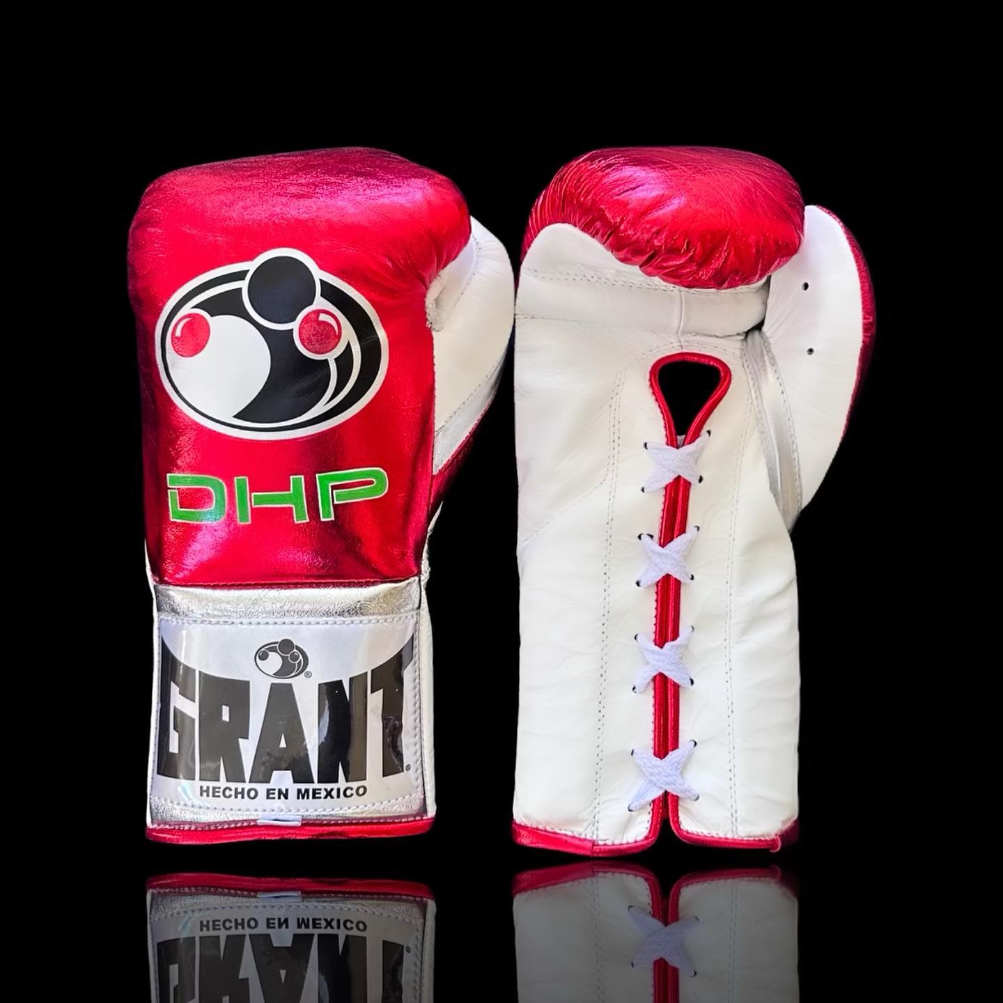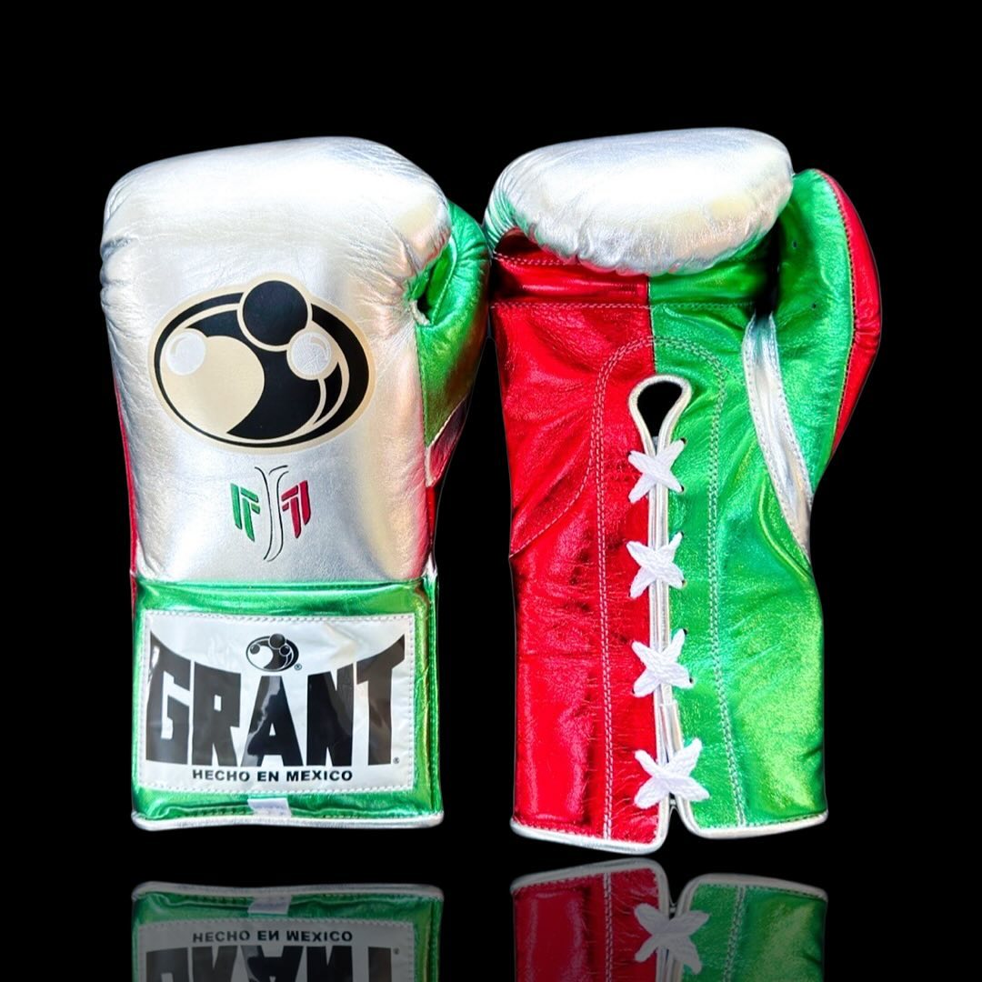 Grant Silver Green Red Lace-Up Boxing Gloves Training Edition