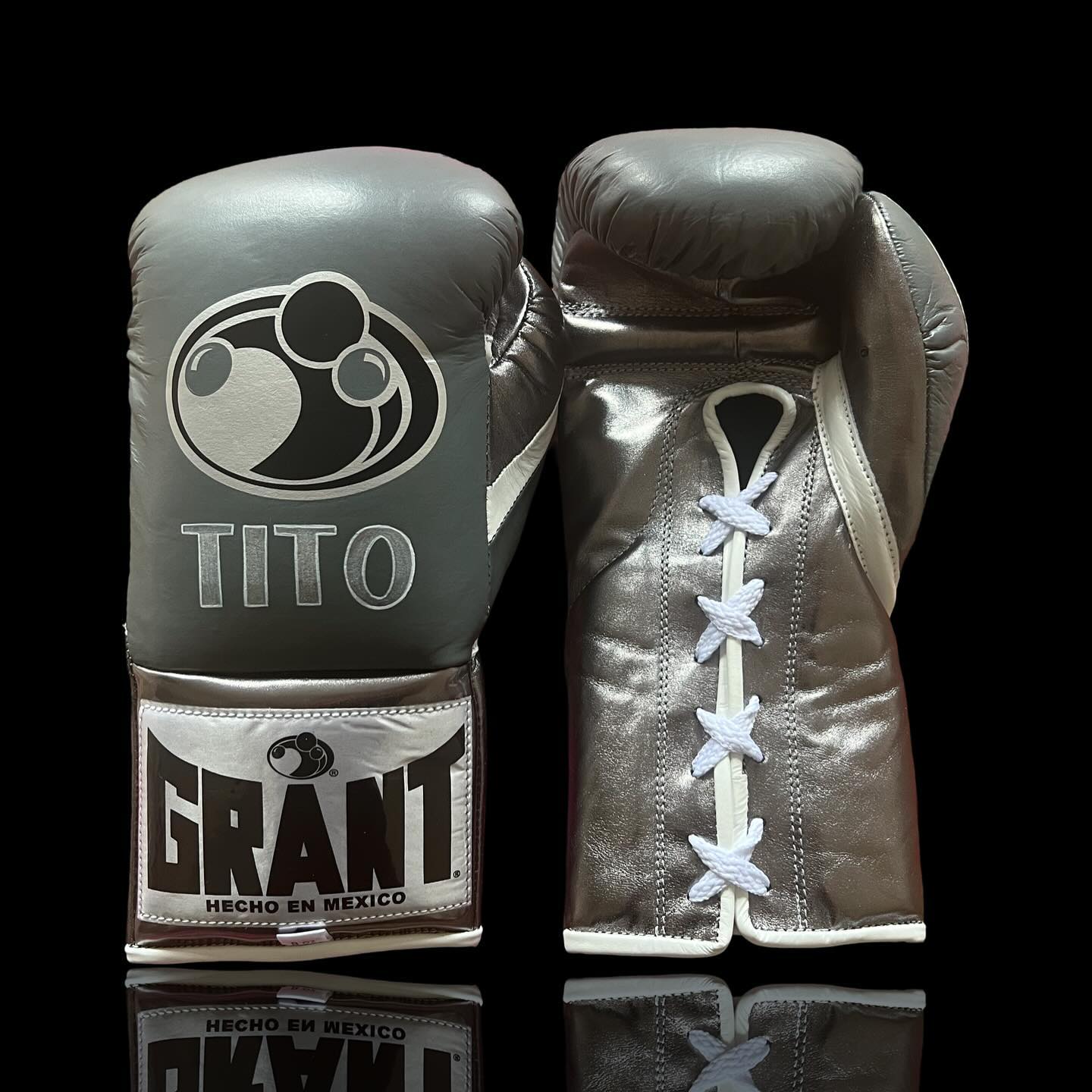 Grant Silver & Grey Personalized Lace-Up Boxing Gloves – Premium Training Edition