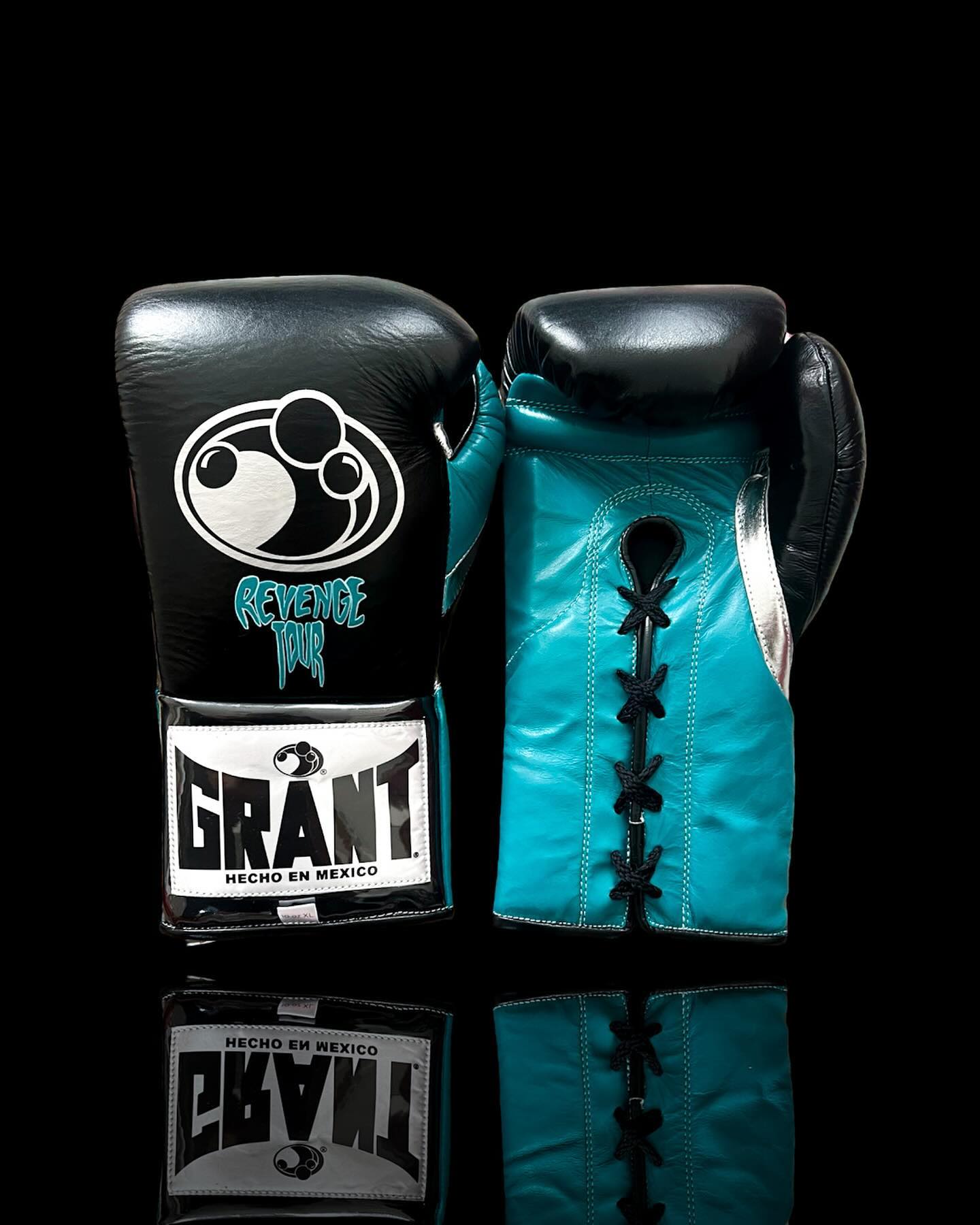 Grant Revenge Tour Black Teal Lace-Up Boxing Gloves Training and Sparring Model