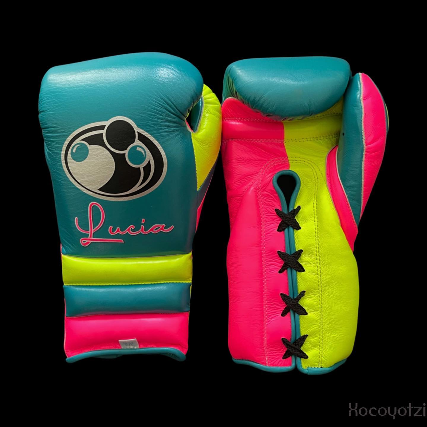 Grant Teal, Pink & Neon Lace-Up Boxing Gloves – Training Gloves