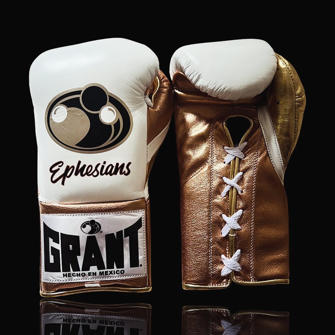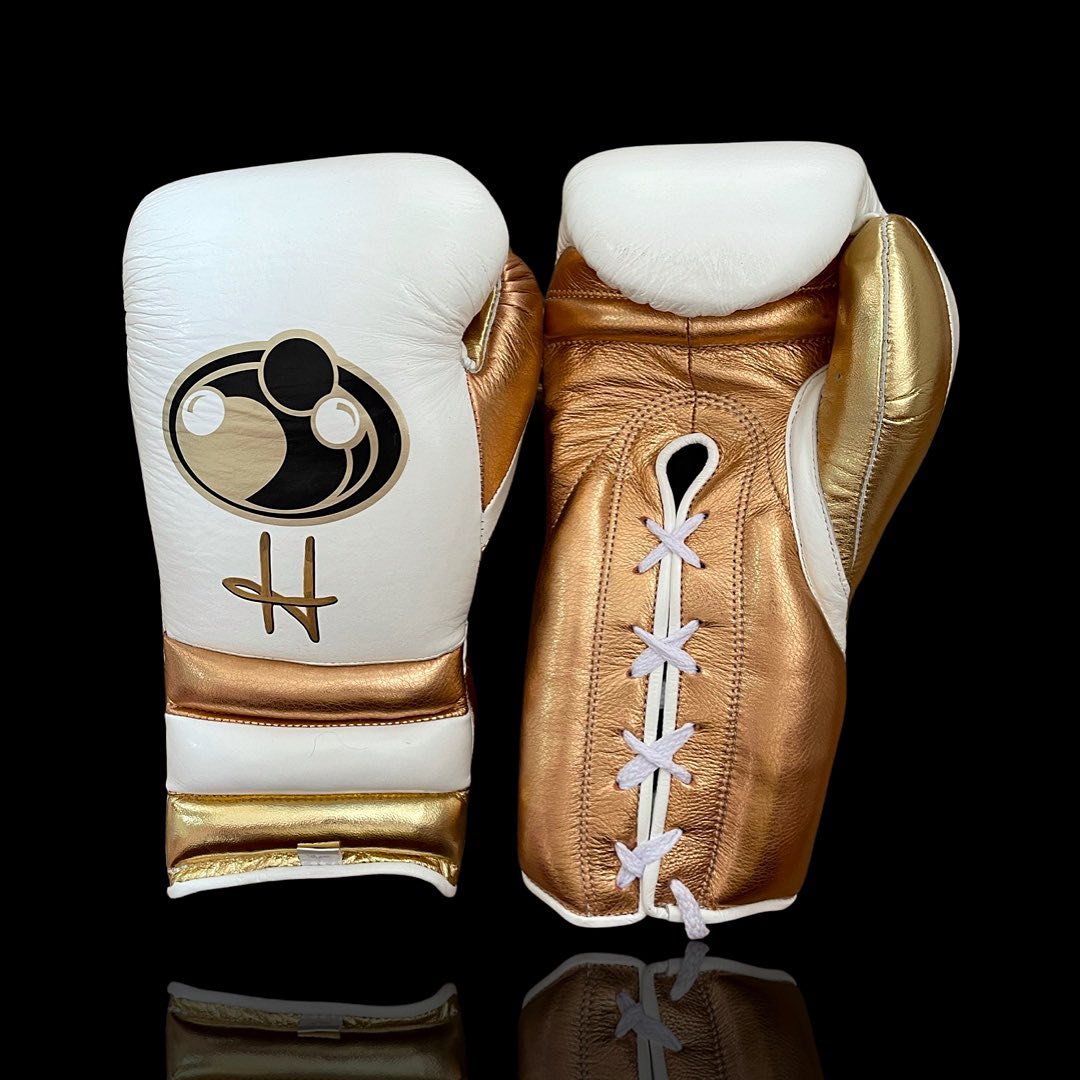 Grant White Gold Lace-Up Boxing Gloves Training Edition