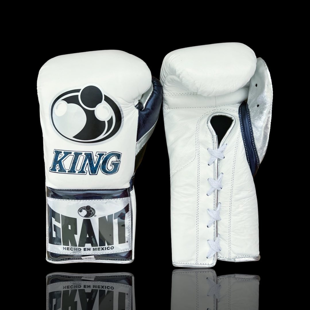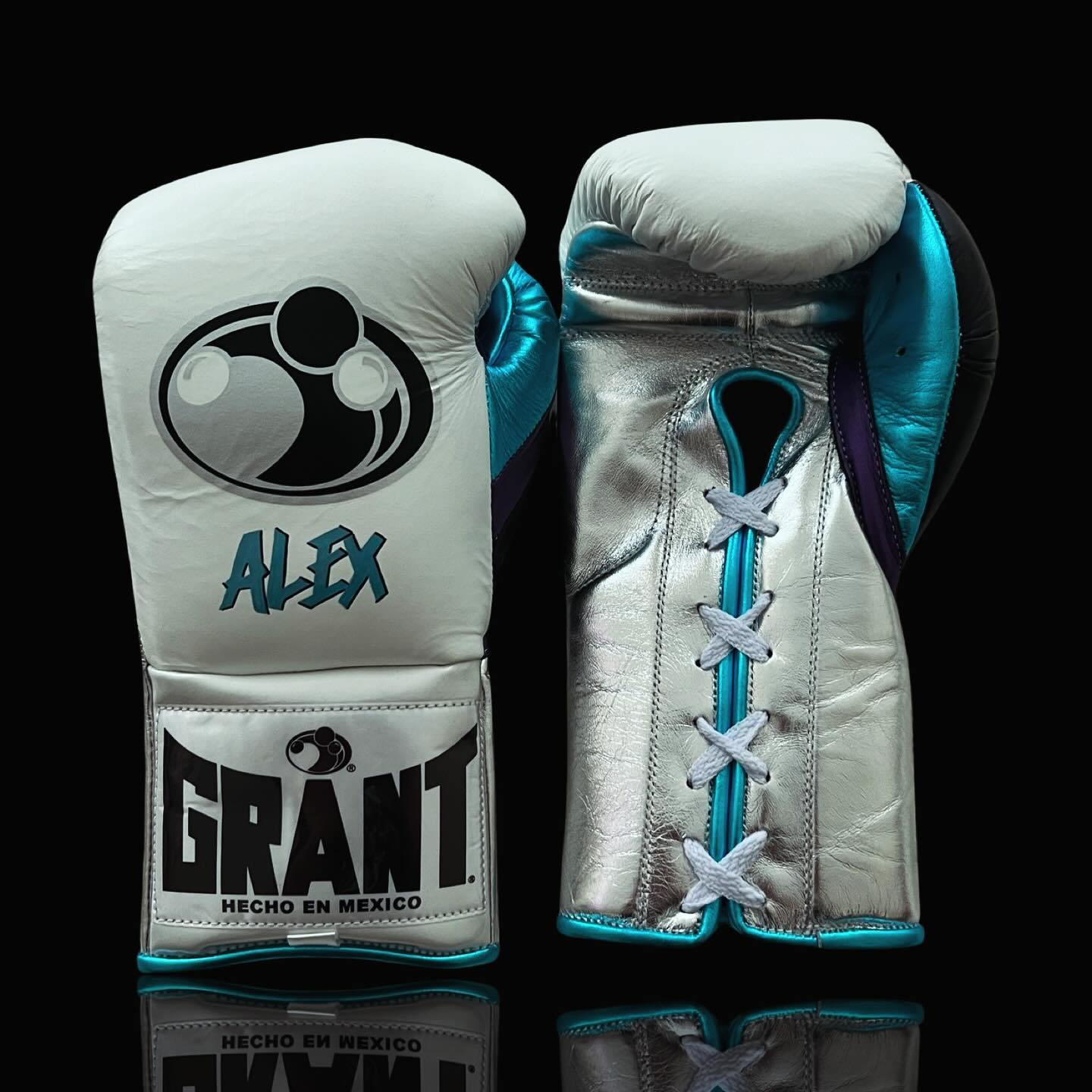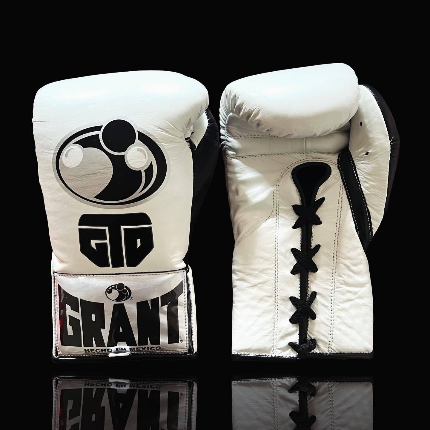 Grant White & Black Lace-Up Boxing Gloves – Professional Fight Edition