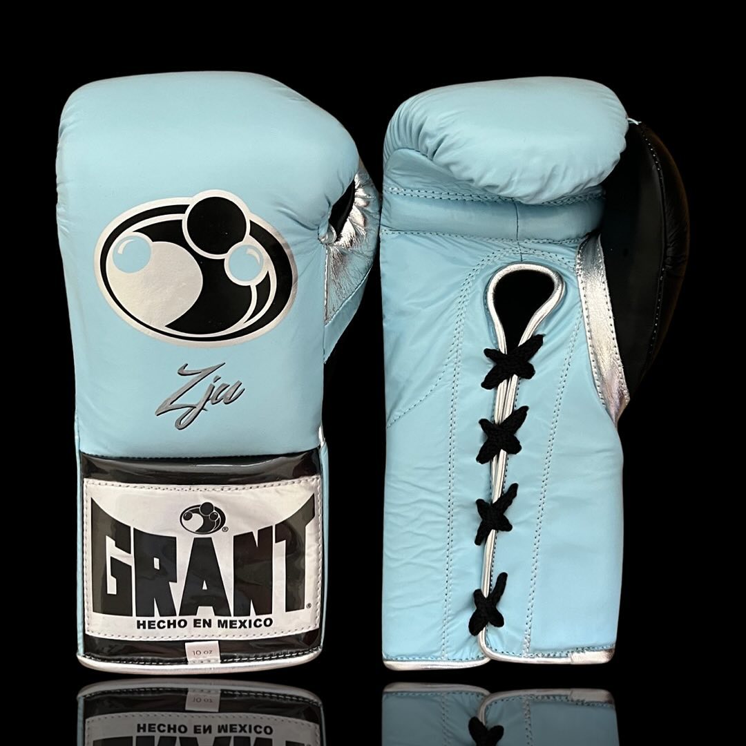 Grant Sky Blue Lace Up Boxing Gloves Silver Accent Training Edition