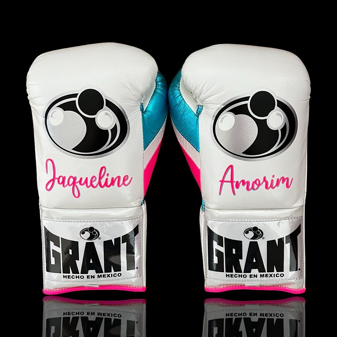 Grant White Boxing Gloves Pink and Teal Accent Lace Up Training Edition