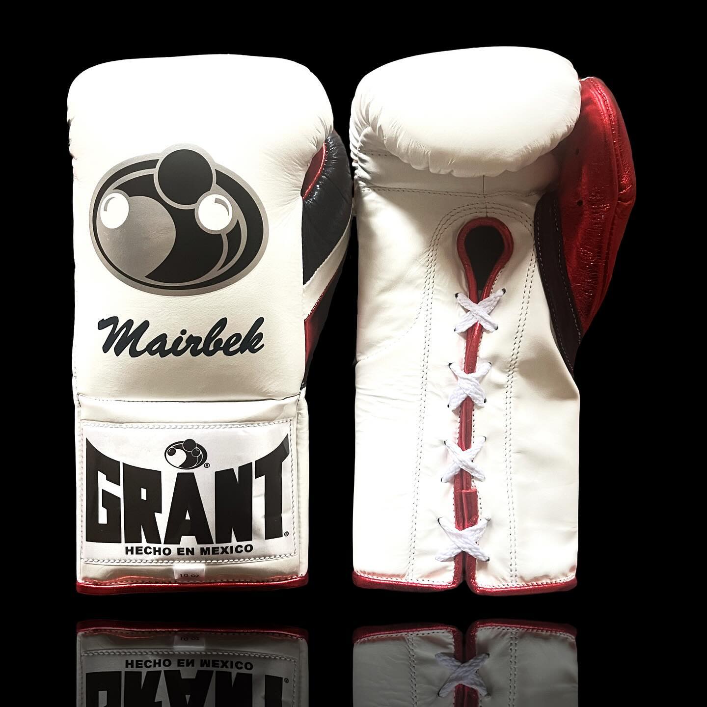 Grant White & Red Personalized Lace-Up Boxing Gloves – Professional Training Edition