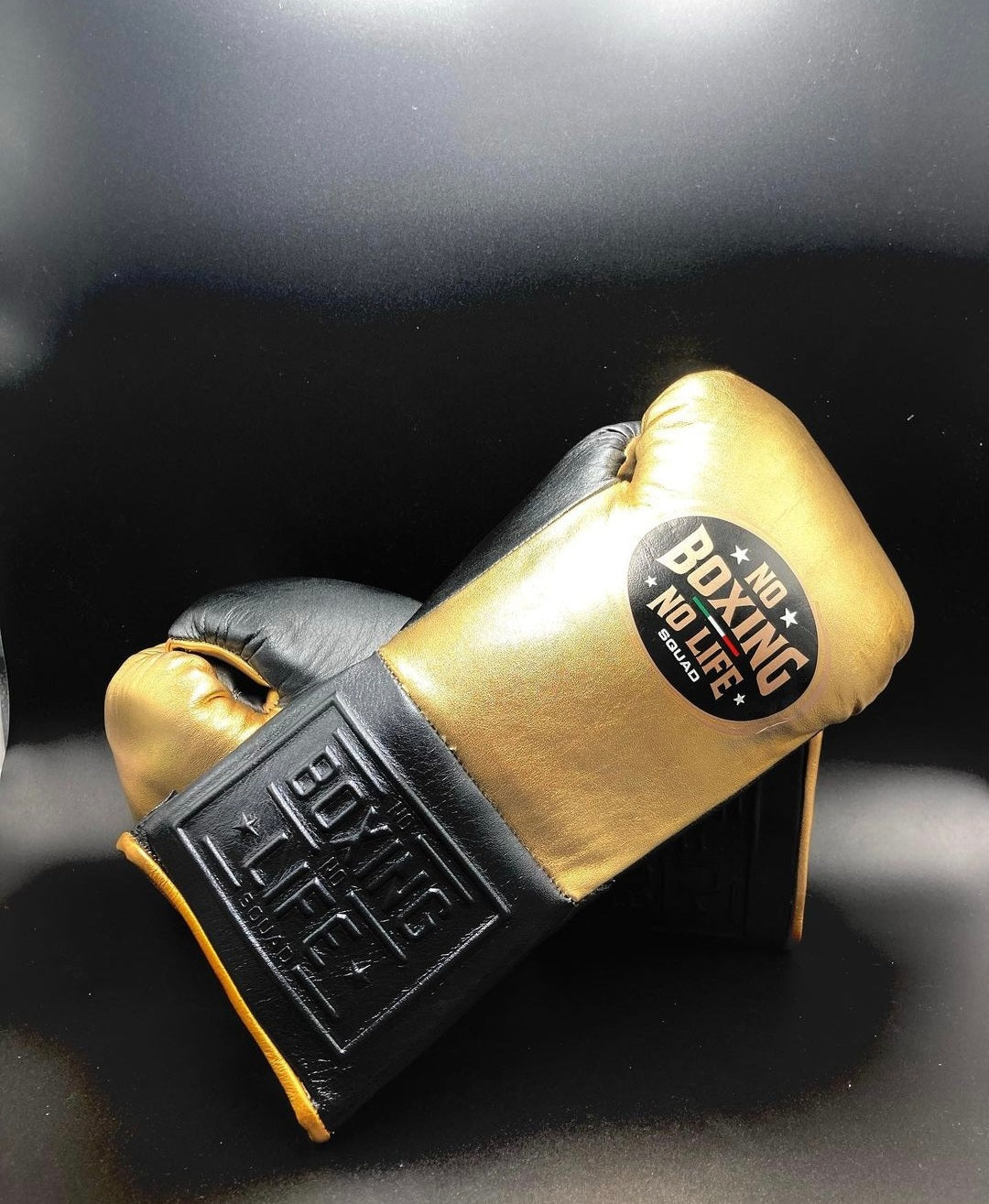 No Boxing No Life Gold/Black Boxing Gloves, Hand-Made Comfort Training Gear