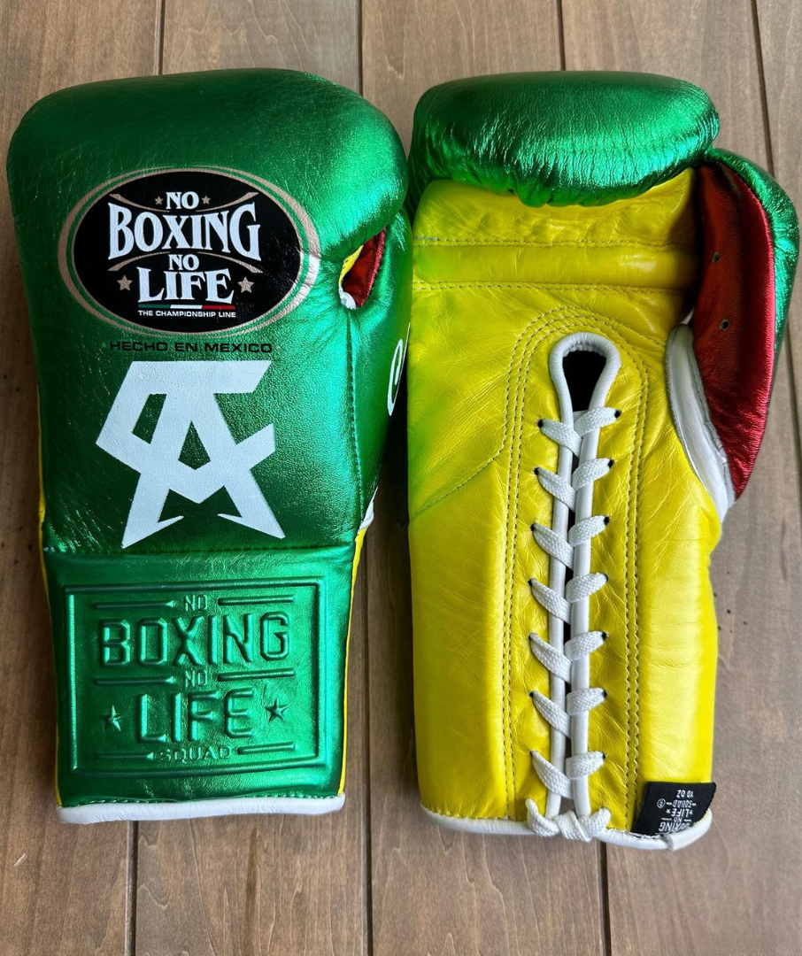 No Boxing No Life Green/Gold Boxing Gloves, Premium Soft-Padding Sparring Training Gear