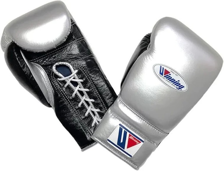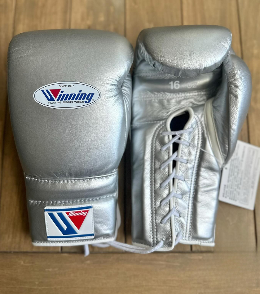 Winning Silver Boxing Gloves 16oz Lace-Up Training Gloves