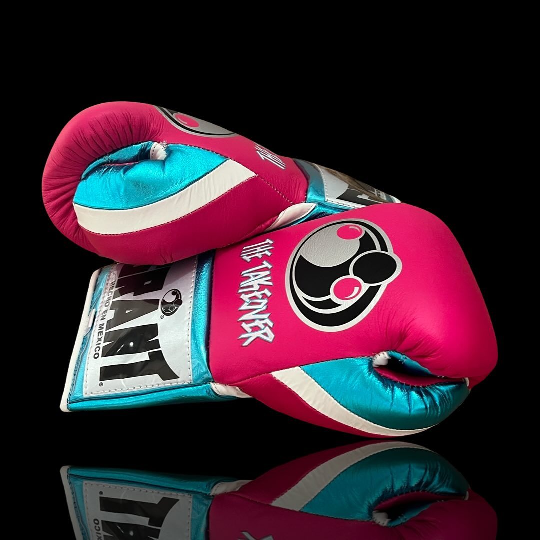 Step into the ring with confidence using these striking Grant boxing gloves designed in an eye-catching pink and turquoise color combination. Made with top-grade leather and expert craftsmanship, these gloves deliver reliable protection and long-lasting performance. The traditional lace-up system provides a firm, locked-in wrist fit for better stability and control during training or sparring. Carefully layered padding ensures excellent impact absorption while maintaining comfort for extended use. A perfect blend of bold style and professional function, this pair is ideal for athletes who want performance and standout design.