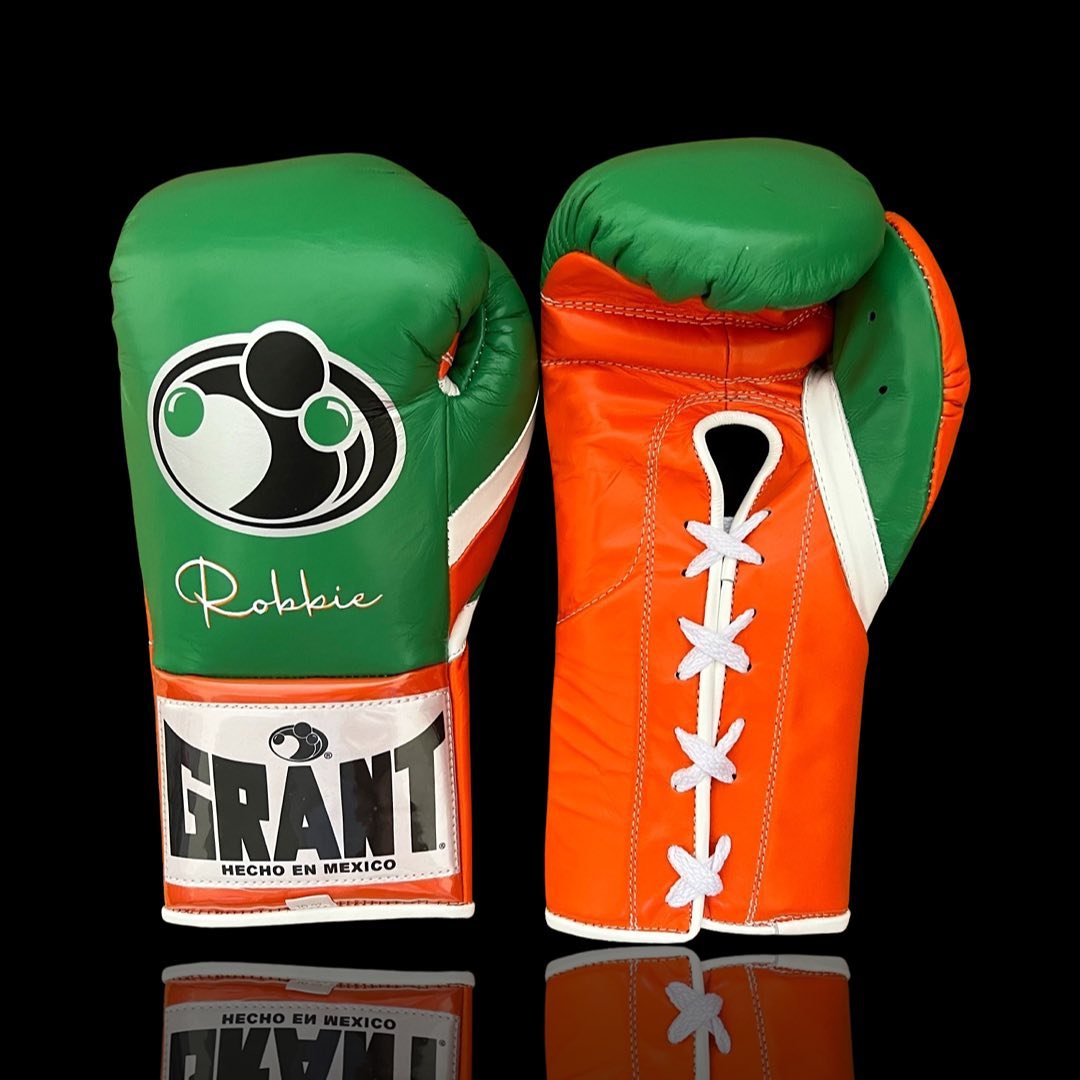 These Grant boxing gloves feature a striking green and orange color combination with a clean professional finish. Designed for serious training, the gloves provide excellent hand protection and wrist stability during workouts, sparring, and competition practice. The durable construction supports long-lasting use, while the classic lace-up closure ensures a secure and adjustable fit. With a comfortable inner structure and balanced padding, these gloves help deliver confidence and control in every punch. Ideal for athletes who value performance, style, and reliability in their boxing gear.