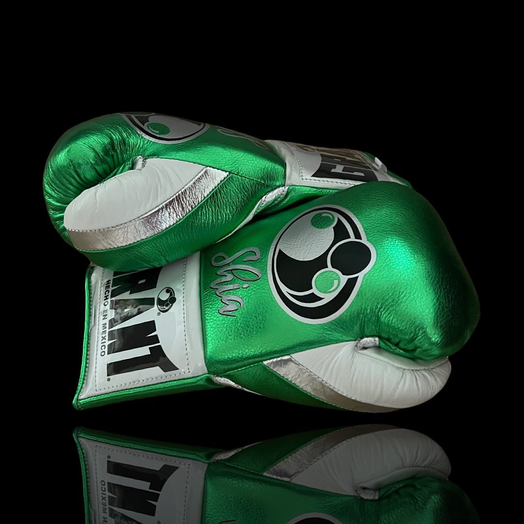 These Grant boxing gloves present an impressive blend of metallic green and crisp white tones, creating a fresh and powerful appearance. The glossy green exterior pairs perfectly with clean white side panels, delivering a balanced and professional look. A classic lace-up system offers dependable wrist support and a snug, adjustable feel. The smooth finishing and carefully stitched structure provide comfort and stability during intense training. Designed for boxers who appreciate standout style along with practical performance, this pair brings confidence to every punch.