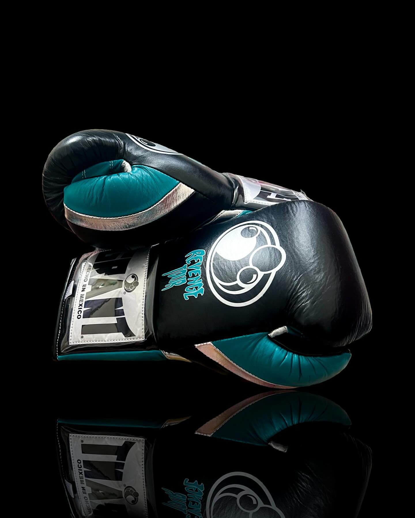 These Grant Revenge Tour edition boxing gloves feature a bold black and teal color combination that stands out in any gym setting. The classic lace-up design provides a precise and supportive fit, helping maintain solid wrist alignment during intense sessions. The gloves include balanced internal padding for effective shock absorption and hand protection. Clean stitching, reinforced construction, and a smooth exterior finish support long-lasting use. Designed for regular training, mitt work, and sparring, this pair blends modern style with dependable performance.