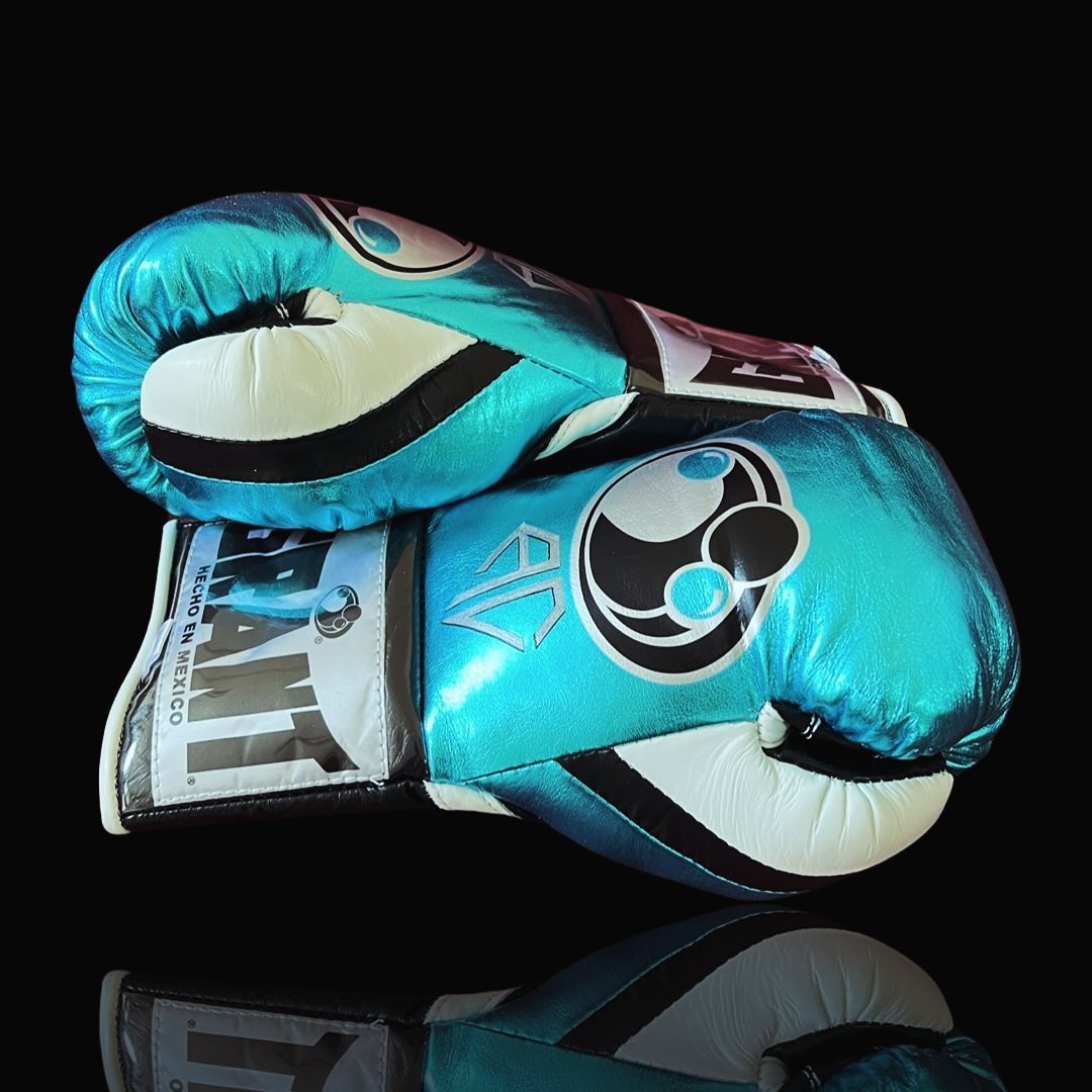 Stand out in the gym with these metallic teal and black lace-up boxing gloves. The bold teal finish paired with sleek black detailing creates a modern, high-impact look while maintaining a professional training feel.